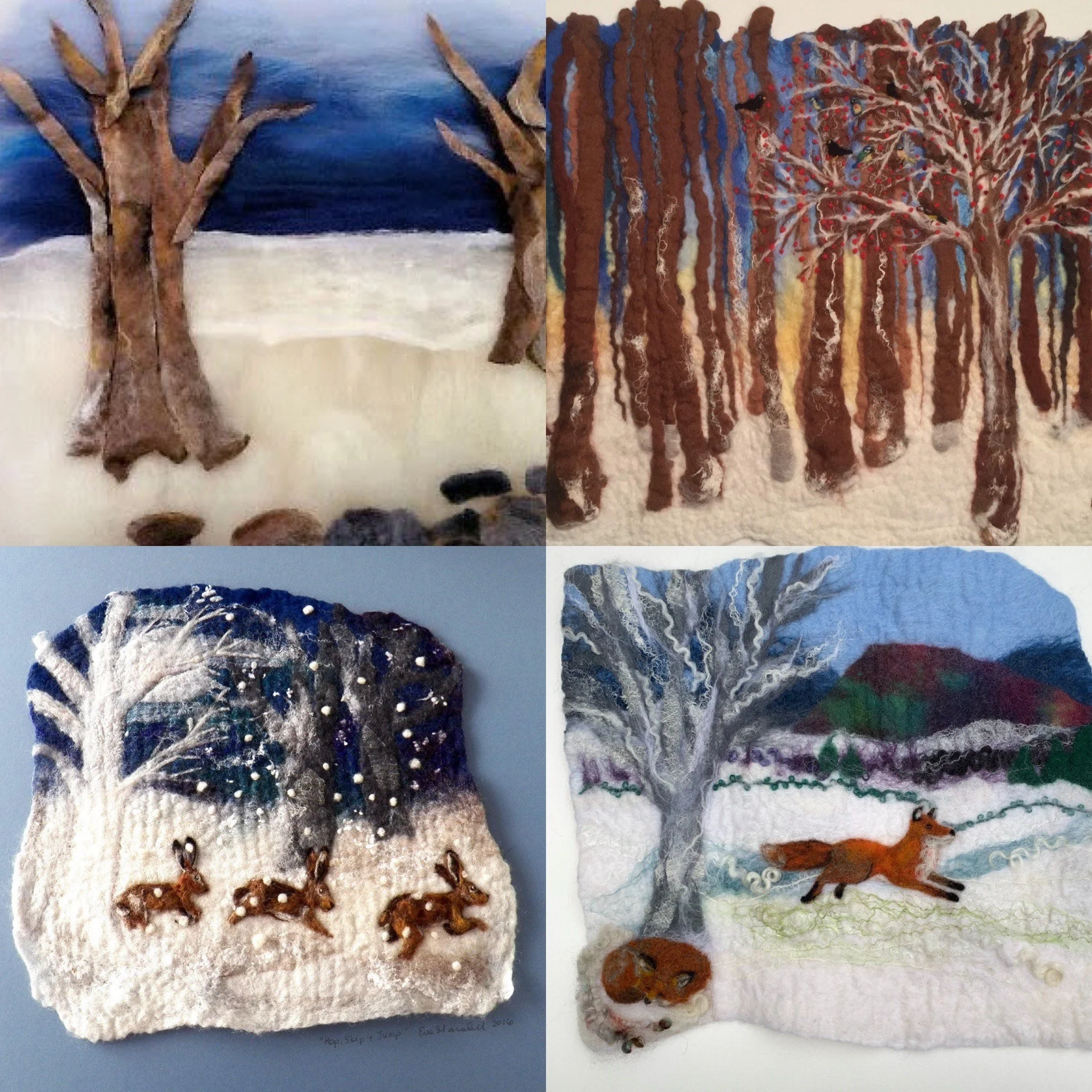 Learn to create a wet felted winter woodland in the morning using Merino wool and silk fibres. In the afternoon follow step by step instructions to needle felt a sleeping fox, a hare or an owl sitting in the tree.